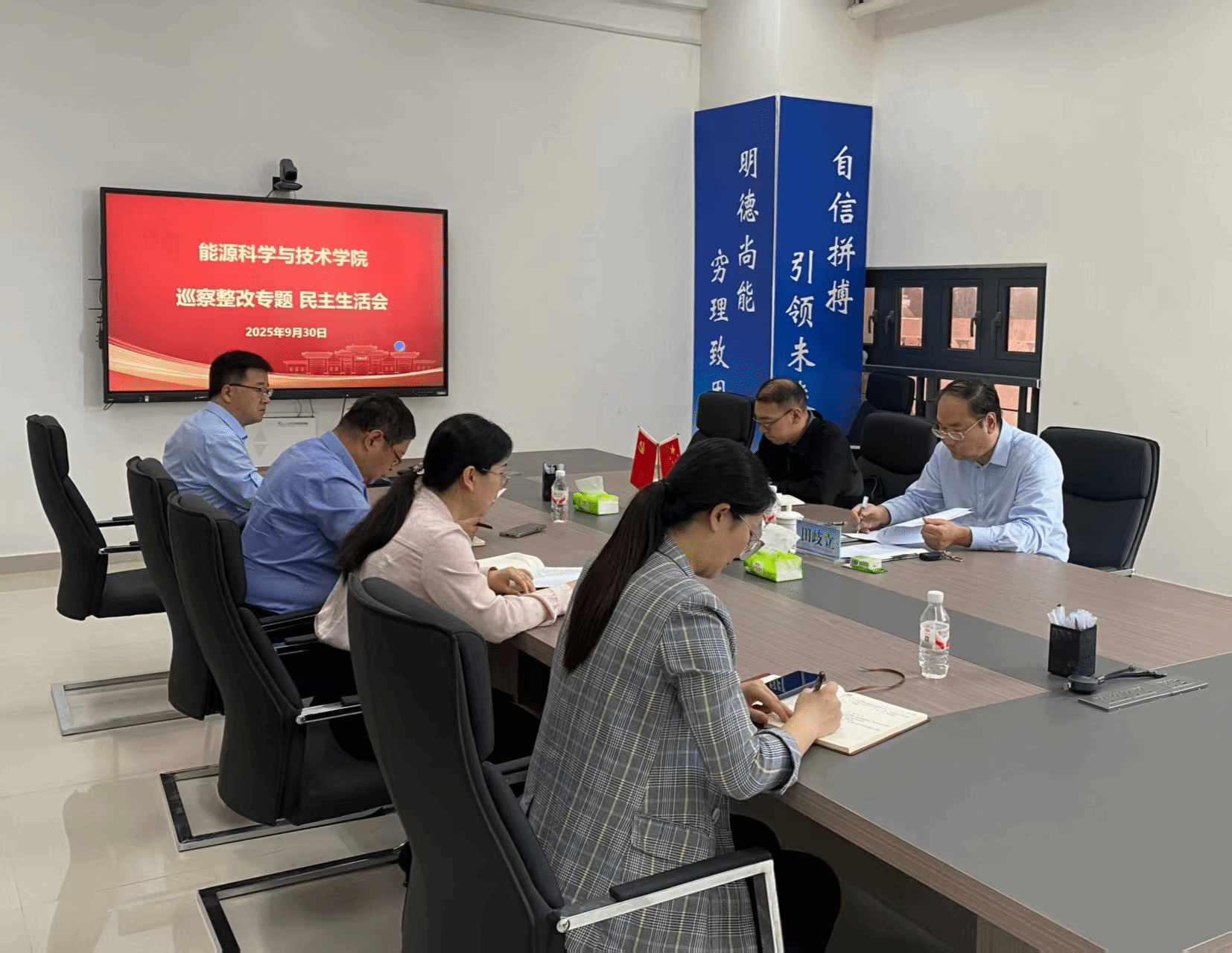 根据校党委巡察整改工作要求,9月30日,m88官网,m88官网召开巡察整改专题民主生活会。校党委巡察工作办公室主任田歧立、校纪委监察专员办公室第一纪检监察室贾永健到会指导。m88官网,m88官网党委书记程亚敏主持会议,学院领导班子成员参加会议。